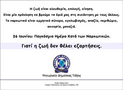 24-06-2005: Δήλωση του Υπουργού Δημόσιας Τάξης για την Παγκόσμια Ημέρα κατά των Ναρκωτικών (26 Ιουνίου)