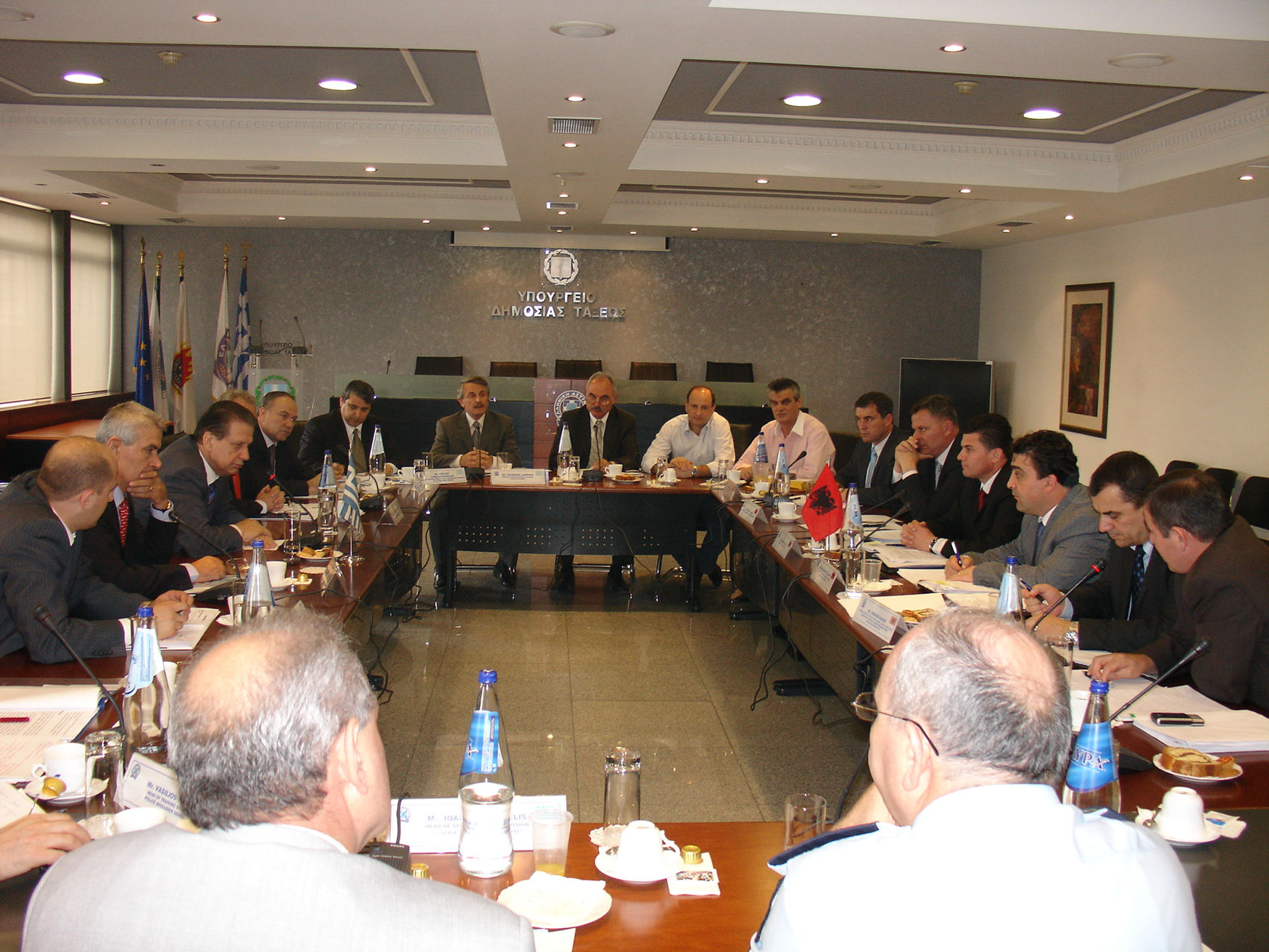 Κατά τη διάρκεια της συνάντησης συζητήθηκαν θέματα σχετικά με: · Τη Διασυνοριακή συνεργασία. · Το Πρωτόκολλο Εφαρμογής της υπάρχουσας Συμφωνίας Αστυνομικής Συνεργασίας. · Την Εκπαίδευση. · Τα μέτρα για την καλύτερη αστυνόμευση των κοινών εξωτερικών συνόρων με σκοπό την αποτροπή της παράνομης διέλευσης. · Τη συνεργασία για την εξάρθρωση των οργανωμένων κυκλωμάτων διακίνησης λαθρομεταναστών. · Το οργανωμένο έγκλημα (ναρκωτικά, πλαστογραφία ταξιδιωτικών εγγράφων κ.τ.λ.) · Τα καταζητούμενα άτομα αλβανικής καταγωγής κοινού αστυνομικού ενδιαφέροντος. Ήδη επιχειρησιακοί αξιωματικοί καθώς και Διευθυντές των εγκληματολογικών Υπηρεσιών συνεργάζονται με σκοπό την ανταλλαγή στοιχείων για τον εντοπισμό των αλλοδαπών.