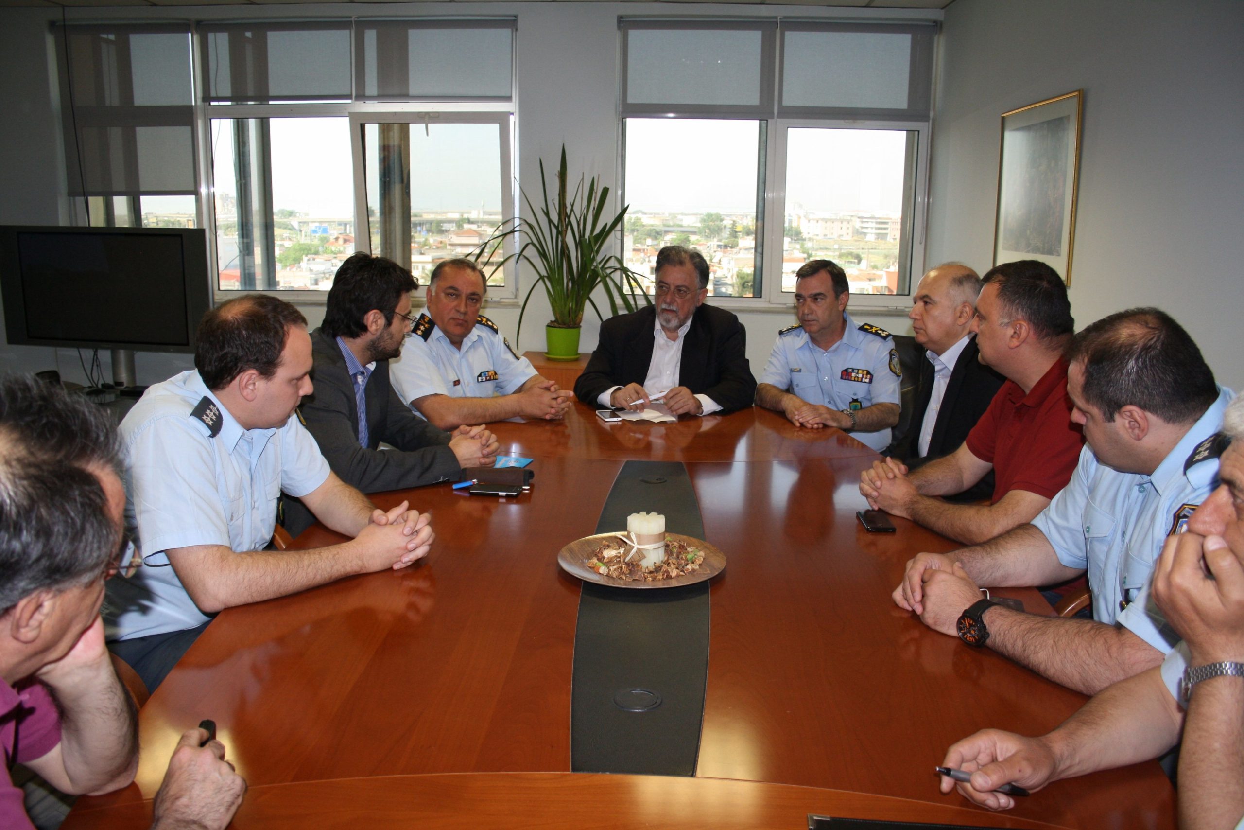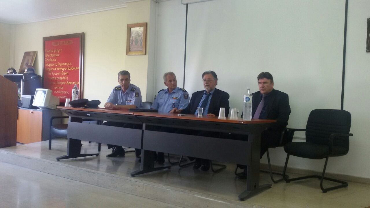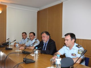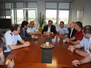 Εν συνεχεία, επισκέφθηκε την Περιφερειακή Πυροσβεστική Διοίκηση Θεσσαλίας, όπου προήδρευσε σύσκεψης με τους Διοικητές των Υπηρεσιών και Κλιμακίων της Περιφέρειας, με θέμα την τρέχουσα αντιπυρική περίοδο. Αμέσως μετά, συναντήθηκε με τον Δήμαρχο Λαρισαίων κ. Αποστόλη Καλογιάννη, με τον οποίο συζητήθηκαν τα προβλήματα της πόλης, ιδιαίτερα αυτά που αφορούν σε αστυνομία και πυροσβεστική, η αντιπυρική περίοδος και ο καλύτερος συντονισμός των υπηρεσιών με το Δήμο.