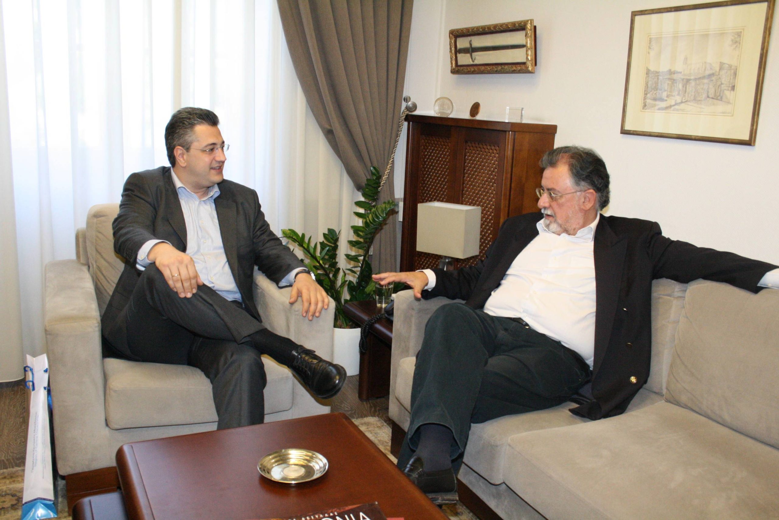 Ακολούθως, ο κ. Πανούσης συναντήθηκε με το Δήμαρχο Θεσσαλονίκης κ. Γιάννη Μπουτάρη, με τον οποίο συζήτησαν τα προβλήματα της περιοχής, αλλά και το ενδεχόμενο κατάρτισης Ειδικού Επιχειρησιακού Σχεδίου για την Αστυνόμευση της πόλης. Εν συνεχεία, ο Αναπληρωτής Υπουργός συναντήθηκε με τον Περιφερειάρχη Κεντρικής Μακεδονίας, κ. Απόστολο Τζιτζικώστα. Κατά τη συνάντηση αποτυπώθηκαν τα προβλήματα της Περιφέρειας όσον αφορά στα θέματα αρμοδιότητας του Υπουργείου και αποφασίστηκε κοινή δράση για την αντιμετώπισή τους.