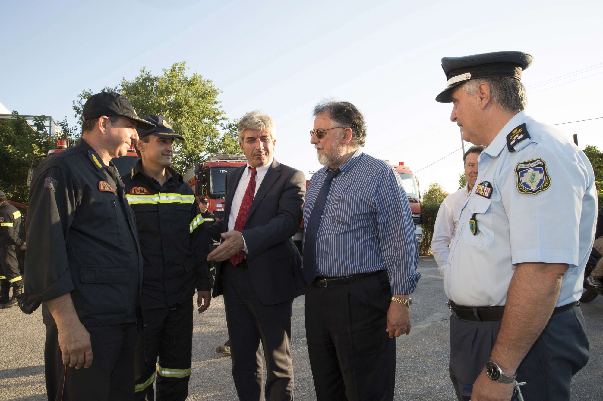 Τον Αναπληρωτή Υπουργό συνόδευαν ο Γενικός Γραμματέας Δημόσιας Τάξης, κ. Δημήτρης Αναγνωστάκης, ο Γενικός Επιθεωρητής Αστυνομίας Νοτίου Ελλάδος, Αντιστράτηγος Κωνσταντίνος Μιχαιρίνας, ο Γενικός Αστυνομικός Διευθυντής Αττικής, Υποστράτηγος Ιωάννης Διαμαντόπουλος και ο Διευθυντής του Πολιτικού Γραφείου του Αναπληρωτή Υπουργού, κ. Βασίλης Μαστρογιάννης.