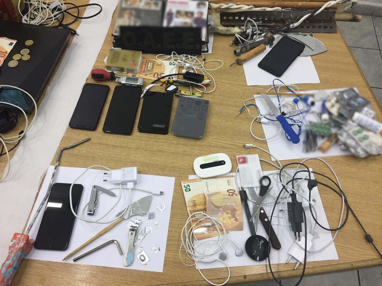 Συγκεκριμένα και κατόπιν αξιοποίησης πληροφοριών που περιήλθαν στη Γενική Γραμματεία Αντεγκληματικής Πολιτικής, δόθηκε εντολή στην Ομάδα Αντιμετώπισης Έκνομων Ενεργειών της Εξωτερικής Φρουράς του Καταστήματος Κράτησης Κορυδαλλού, η οποία πραγματοποίησε έρευνα παρουσία Εισαγγελικού Λειτουργού, σε δεκαπέντε (15) συνολικά κελιά, όπου βρέθηκαν και κατασχέθηκαν: