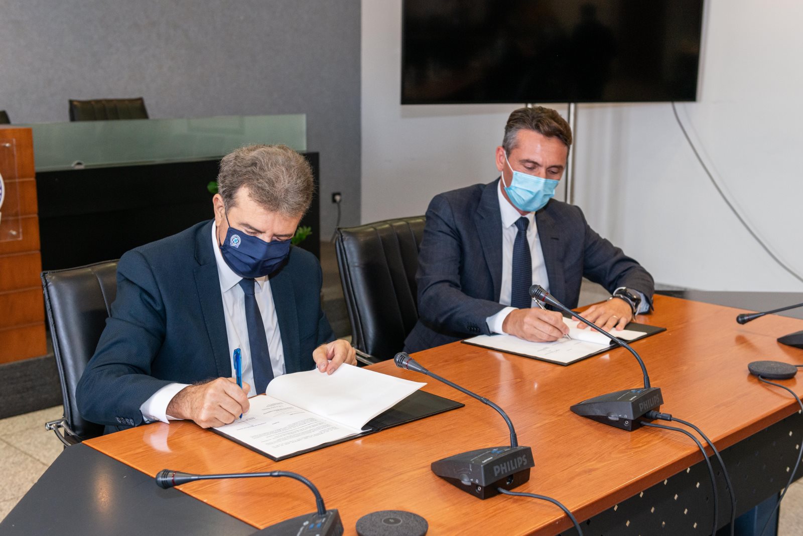 Ο Υπουργός Προστασίας του Πολίτη Μιχάλης Χρυσοχοΐδης υπέγραψε σήμερα, Τρίτη 6 Οκτωβρίου 2020, Μνημόνιο Αμοιβαίας Κατανόησης με τον Πρόεδρο και Διευθύνοντα Σύμβουλο της εταιρείας «Παπαστράτος», Χρήστο Χαρπαντίδη.