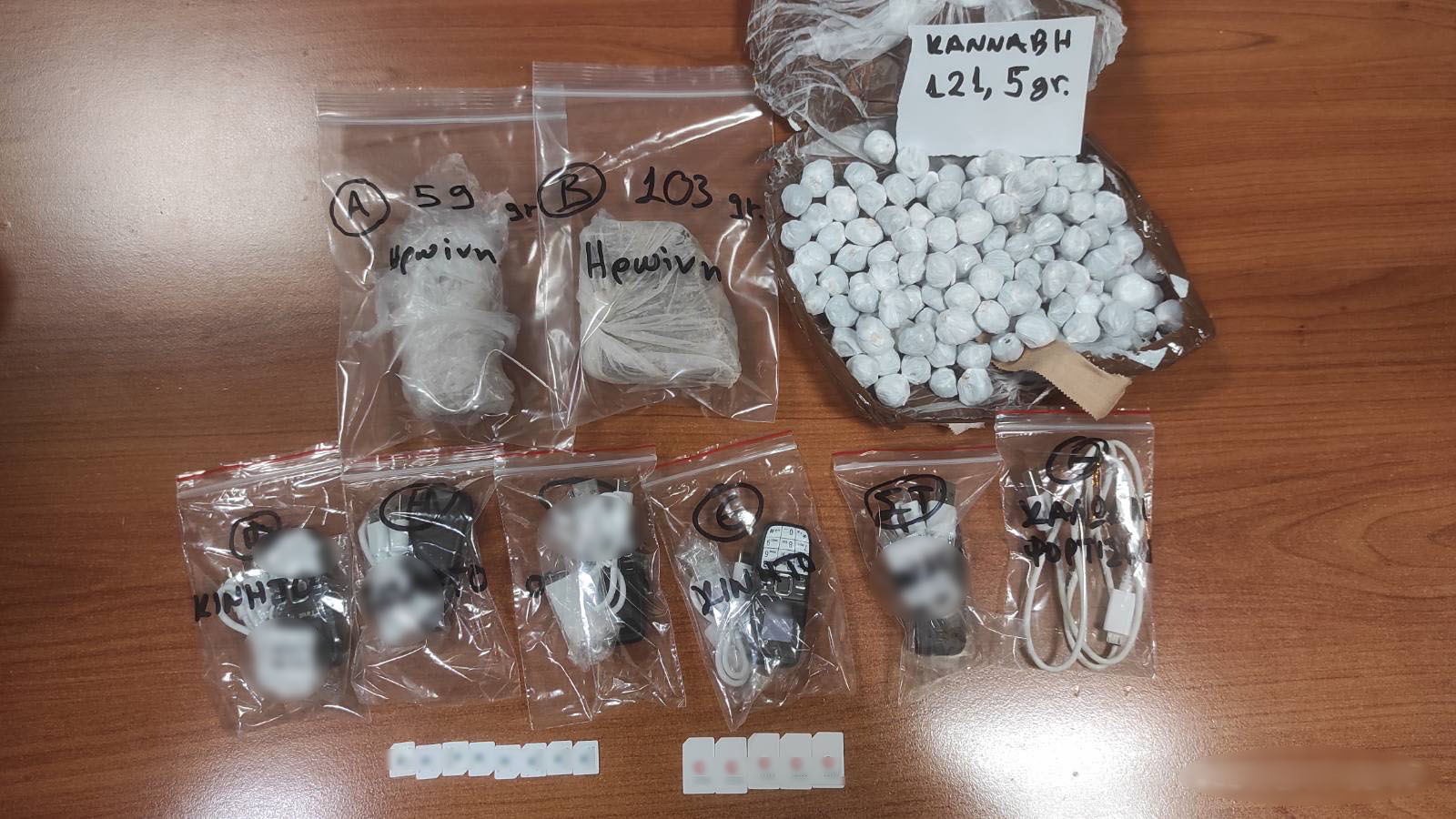 - (5) κινητά τηλέφωνα με ισάριθμους φορτιστές και (13) κάρτες sim .
