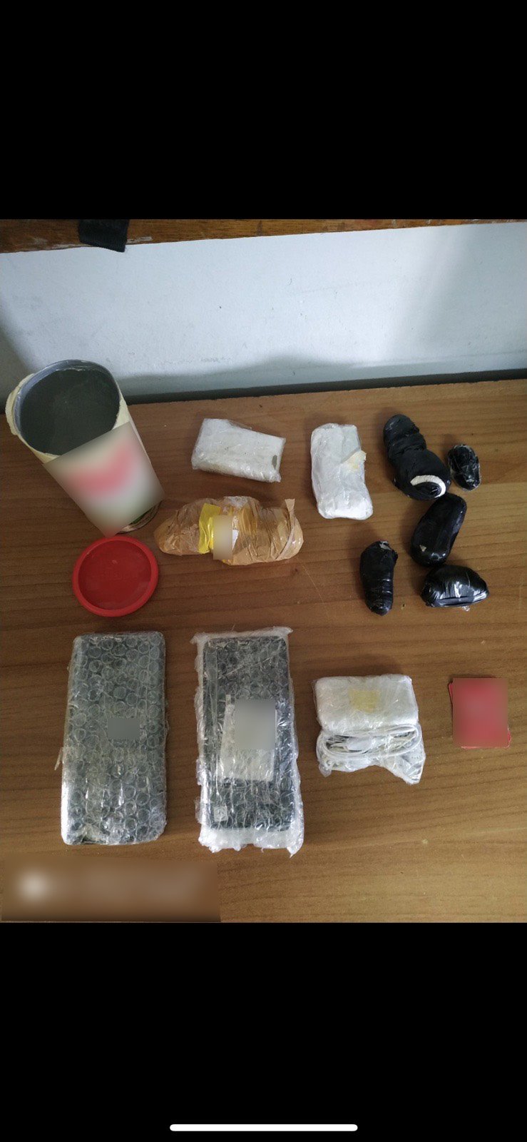 Σε έρευνα που ακολούθησε στη συσκευασία βρέθηκαν και κατασχέθηκαν 350 γραμμάρια ναρκωτικών ουσιών(ηρωίνη, κοκαΐνη και κάνναβη), 2 ζυγαριές ακριβείας, 3 κινητά τηλέφωνα και 5 κάρτες sim.
