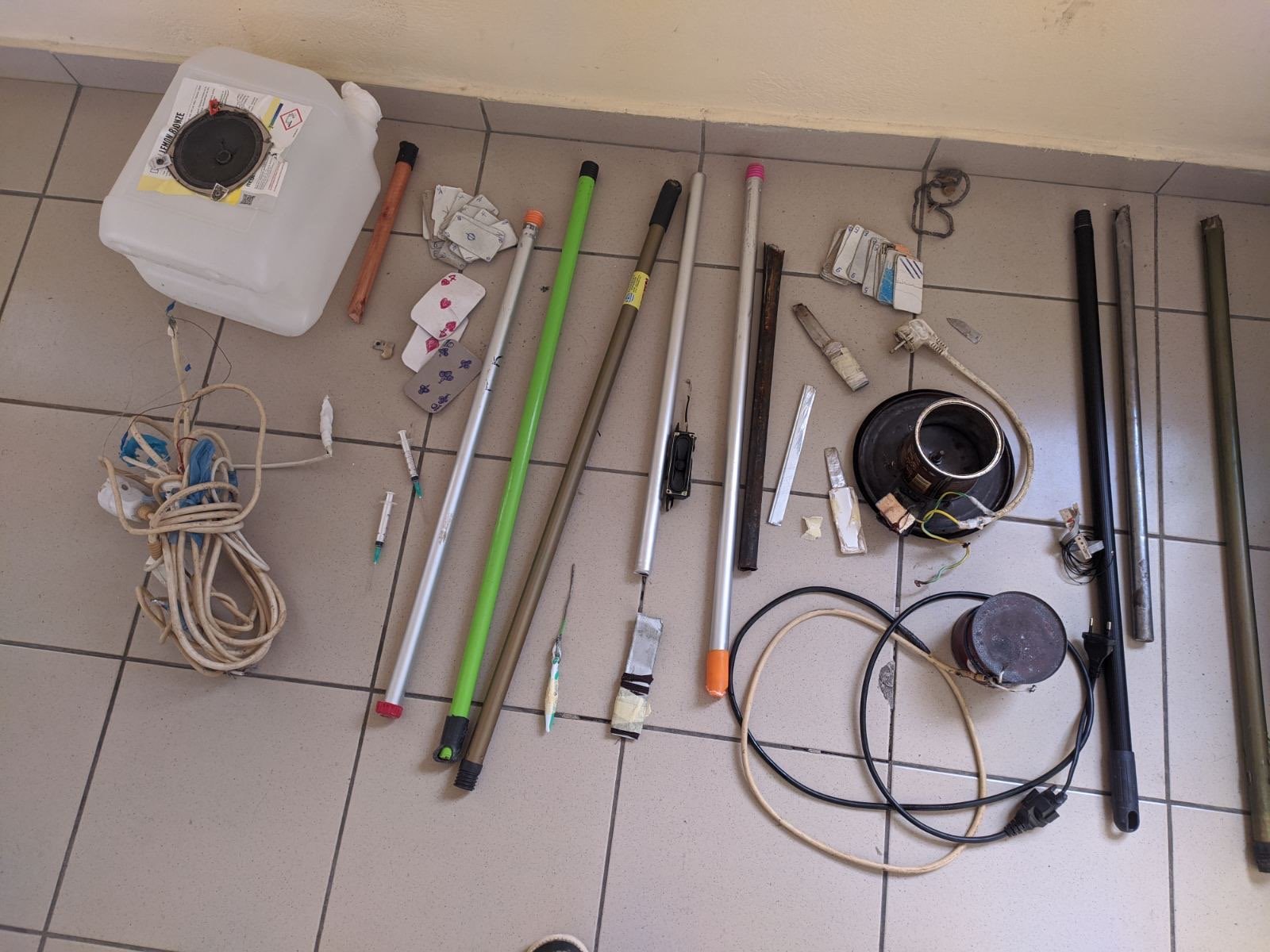 Συνολικά, από την έρευνα σε 20 κελιά, προαύλιο, αίθριο και κοινόχρηστους χώρους, βρέθηκαν και κατασχέθηκαν: