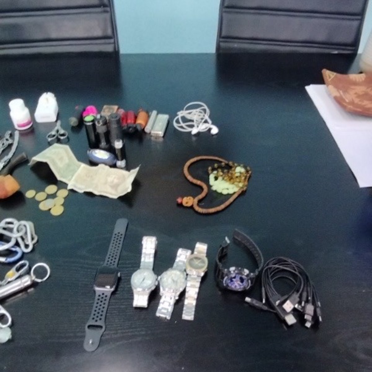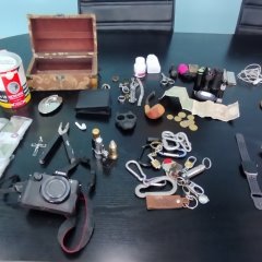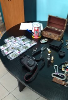 - 130 τηλεκάρτες, φωτογραφική μηχανή και φιαλίδιο με άγνωστη ουσία,