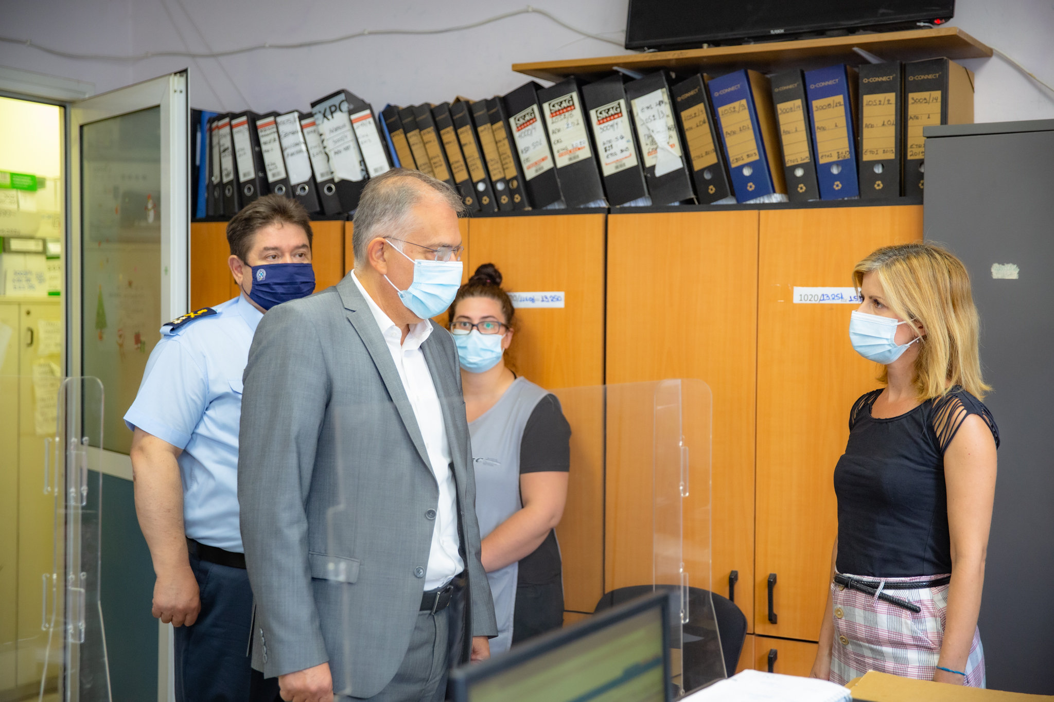 Πρώτοι σταθμοί του Υπουργού ήταν το Α’ Αστυνομικό Τμήμα Περιστερίου και το Αστυνομικό Τμήμα Ασπροπύργου. Παρουσία του Αρχηγού της Ελληνικής Αστυνομίας, Αντιστράτηγου Μιχαήλ Καραμαλάκη, ο Υπουργός συζήτησε με τους διοικητές των Τμημάτων και τους αστυνομικούς που τα στελεχώνουν για θέματα αστυνόμευσης των περιοχών αυτών.