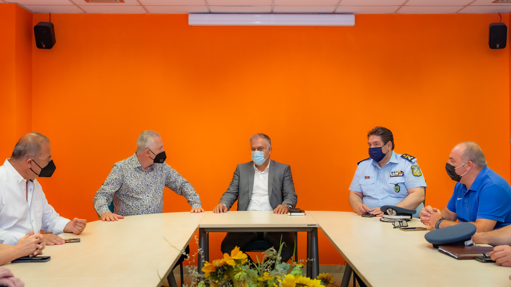 Στη συνέχεια ενημερώθηκε διαδοχικά από τους Δημάρχους Περιστερίου Ανδρέα Παχατουρίδη και Ασπροπύργου Νικόλαο Μελέτη για θέματα σχετικά με την εγκληματικότητα στους Δήμους τους. Συζητήθηκαν θέματα αμοιβαίου ενδιαφέροντος όπως φαινόμενα ενδοοικογενειακής βίας, παραβατικότητας ανηλίκων και το πλαίσιο συνεργασίας της Αστυνομίας με τους δήμους σε διάφορες διοικητικές διαδικασίες. «Ο απεγκλωβισμός αστυνομικών από αυτές τις διαδικασίες θα ενισχύσει τη δύναμη κρούσης της Αστυνομίας» σημείωσε ο Υπουργός Προστασίας του Πολίτη.