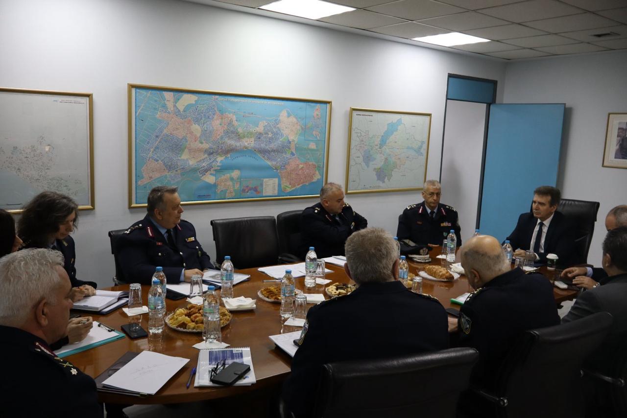 Ο κ. Υπουργός μαζί με τον Υπαρχηγό της ΕΛ.ΑΣ, Αντιστράτηγο Πασχάλη Συριτούδη συζήτησαν με τους Διευθυντές των υπηρεσιών της Θεσσαλονίκης τον νέο σχεδιασμό ασφάλειας, που δίνει έμφαση στην ενίσχυση της εμφανούς αστυνόμευσης με στόχο την εμπέδωση του αισθήματος της ασφάλειας όλων των πολιτών. Στο πλαίσιο αυτό, επιπλέον 150 αστυνομικοί, θα στελεχώσουν τις ομάδες της ΟΠΚΕ και της «ΔΡΑΣΗ» ώστε να αυξηθούν οι περιπολίες, τόσο με ομάδες ήπιας αστυνόμευσης, όσο και με ομάδες πρώτης γραμμής για την αντιμετώπιση της εγκληματικότητας.