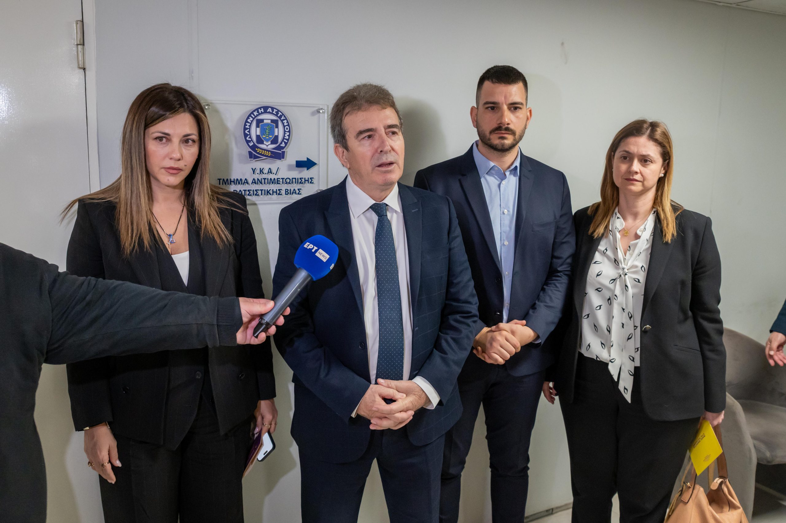Τα γραφεία του Τμήματος Αντιμετώπισης Ρατσιστικής Βίας στην Υποδιεύθυνση Κρατικής Ασφάλειας της Διεύθυνσης Ασφάλειας Αττικής επισκέφθηκε ο Υπουργός Προστασίας του Πολίτη, Μιχάλης Χρυσοχοΐδης συνοδευόμενος από την Υπουργό Κοινωνικής Συνοχής και Οικογένειας, Σοφία Ζαχαράκη, τη Γενική Γραμματέα Ισότητας και Ανθρωπίνων Δικαιωμάτων Ζέφη Δημαδάμα και τον Αρχηγό της ΕΛΑΣ, Αντιστράτηγο Δημήτρη Μάλλιο. Τους υποδέχτηκε ο Προϊστάμενος του Τμήματος, Αστυνόμος Β’ Μιχαήλ Λώλης, ο οποίος τους ξενάγησε στα ανακαινισμένα γραφεία, που στεγάζονται στο κτήριο της ΓΑΔΑ, ενώ παρόντες ήταν και ανώτατοι Αξιωματικοί της Ελληνικής Αστυνομίας.