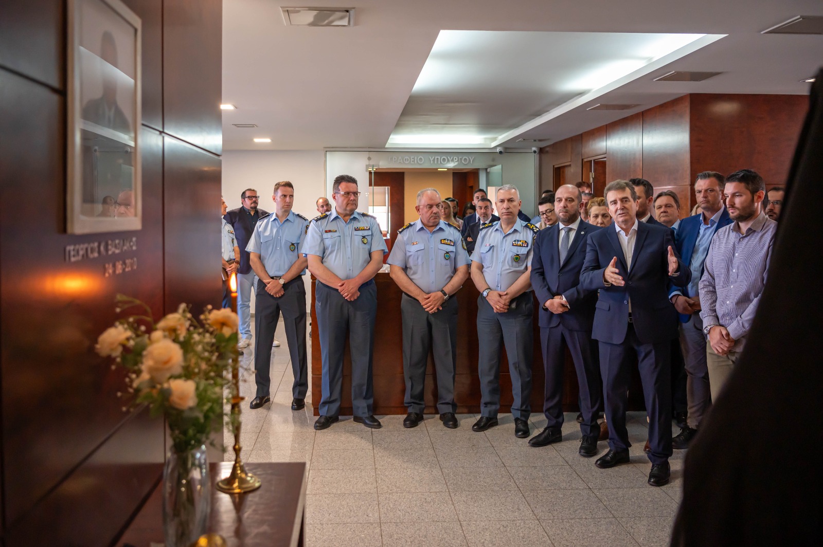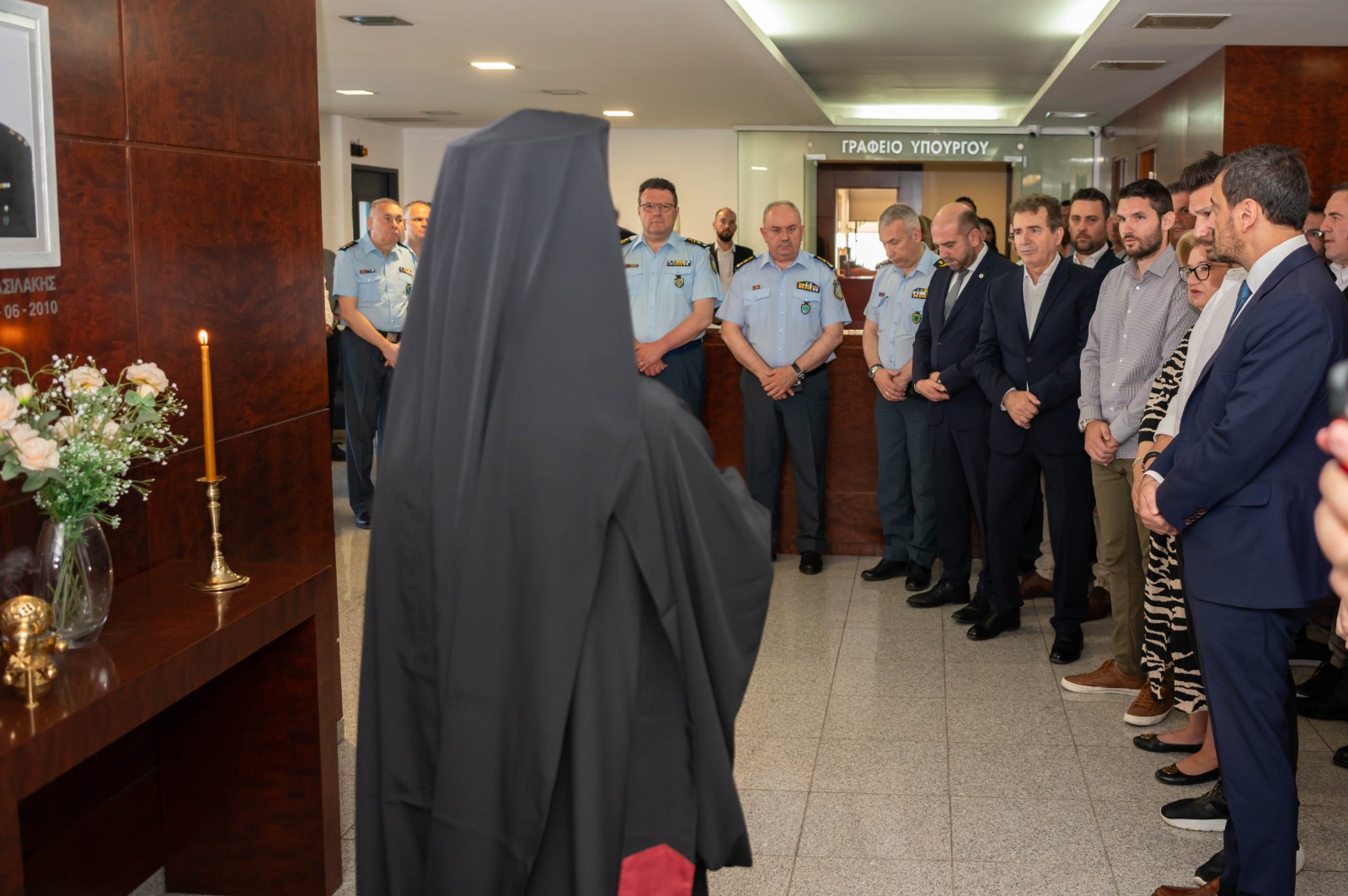 Απευθυνόμενος στους Αξιωματικούς της ΕΛ.ΑΣ που παρίσταντο στην τελετή ευχήθηκε, «όλοι εμείς, πραγματικά αντλώντας το παράδειγμα αυτού του σπουδαίου Αξιωματικού, κάθε μέρα όλο και περισσότερο να προάγουμε την ασφάλεια των Ελλήνων, να είμαστε πάρα πολύ προσεκτικοί για την προστασία της ζωής και της ακεραιότητας των πολιτών και να πετυχαίνουμε τον στόχο μας».