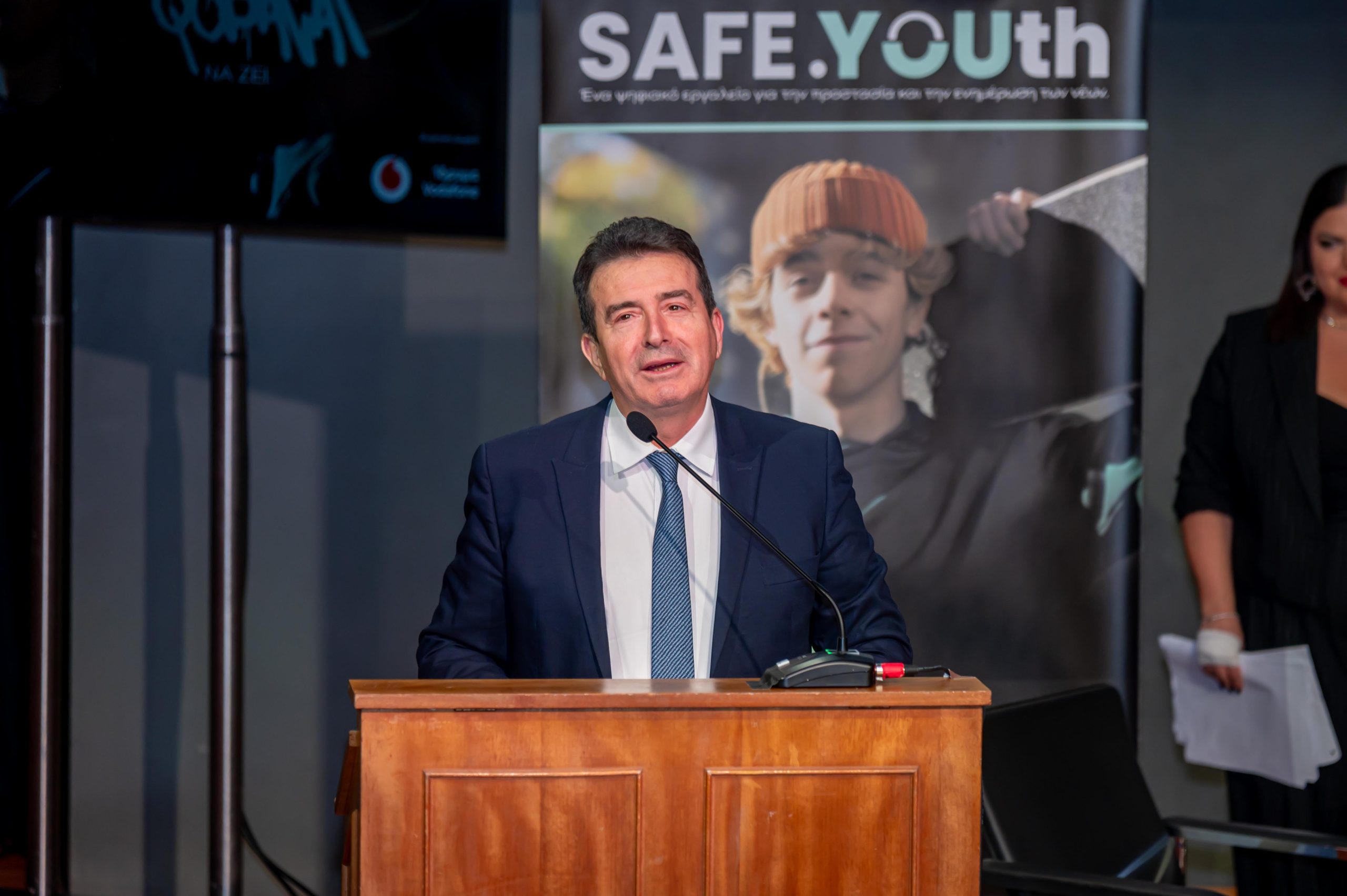 Παράλληλα, ευχαρίστησε τον διευθύνοντα σύμβουλο της Vodafone, Χάρη Μπρουμίδη, για τη σημαντική συνεισφορά της εταιρείας στη δημιουργία της εφαρμογής “SAFE.YOUth”, σημειώνοντας πως «είναι και αυτό το δείγμα της εταιρικής κοινωνικής ευθύνης, που οφείλει να διακρίνει την επιχειρηματικότητα στη Χώρα».