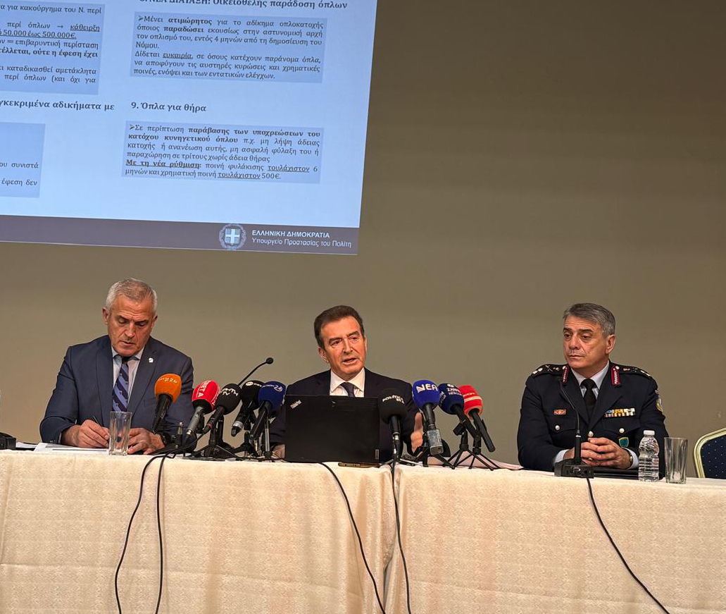 Είναι συγκεκριμένες πράξεις οι παρεμβάσεις που ανακοινώνουμε σήμερα για την αυστηροποίηση της νομοθεσίας για την οπλοκατοχή, εξειδικεύοντας τη δέσμευση του Πρωθυπουργού και εκφράζοντας τη συλλογική βούληση της Κυβέρνησης. Πάνω απ’ όλα όμως, πιστεύω ότι εκφράζουμε τη βούληση του ελληνικού λαού και της τεράστιας πλειοψηφίας του, που τάσσεται σαφώς εναντίον της παράνομης και ανεξέλεγκτης οπλοκατοχής.