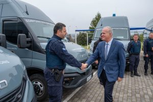Ακολούθως, τόνισε ότι «μέσα σε αυτή τη μεγάλη προσπάθεια εντάσσεται και η σημερινή ενέργεια, και οφείλω να συγχαρώ τον Γενικό Γραμματέα, Αρίστο Περρή, τον Ηρακλή Πατεράκη και όλους όσοι εργάστηκαν, για να ολοκληρωθεί σήμερα η διαδικασία της παράδοσης των 23 οχημάτων, με σκοπό την ασφαλέστερη διεξαγωγή των μεταγωγών».